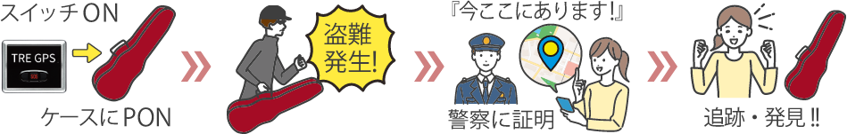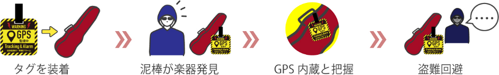 楽器GPSを使う前は、人と話している少しの時間でも楽器から目を離すことに不安を感じていました…楽器GPSを入れたことで不安が軽減され、公共交通機関を使った移動時や楽器を保管する際に気持ちがとても楽になりました!